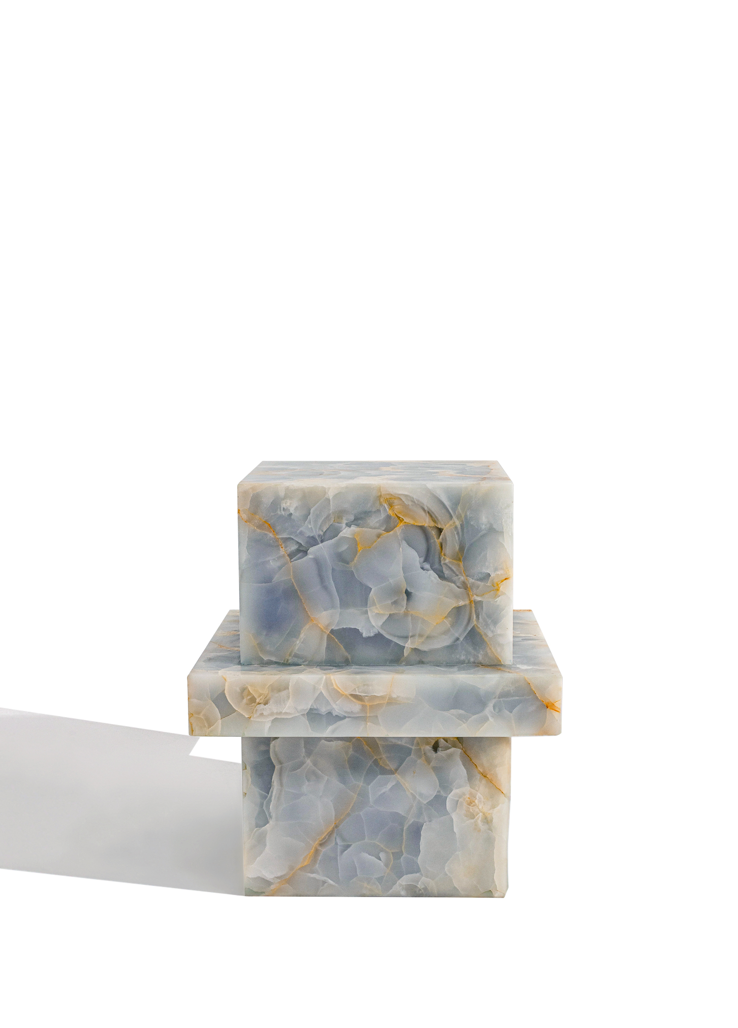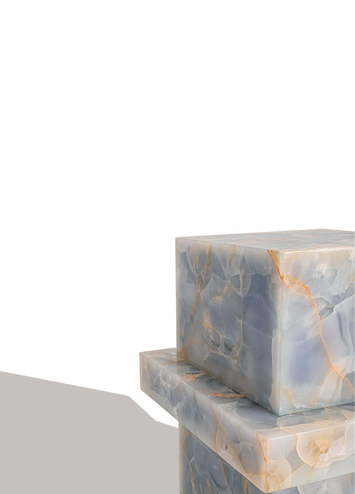 Keskin çizgileri ve geometrik detaylarıyla Quinn, koleksiyonun dinamik ruhunu yansıtır. Mermerin uyumlu birleşimi Quinn’e sofistike ve zarif bir görünüm kazandırarak onu komodin, yan sehpa, dekoratif bir sanat objesi veya ürün sergileme ünitesi olarak kullanıma uygun hale getirir. Her iç mekâna hem şıklık hem de işlevsellik katar.